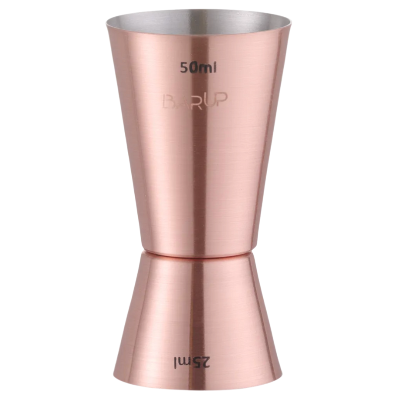 The Double Copper Jigger combines elegance and functionality, meeting the demands of restaurant professionals who seek both performance and style in their equipment. With its dual precise measurement capacity, 25 mL and 50 mL, this jigger is an essential tool for preparing cocktails and drinks, allowing for quick and efficient dosing.