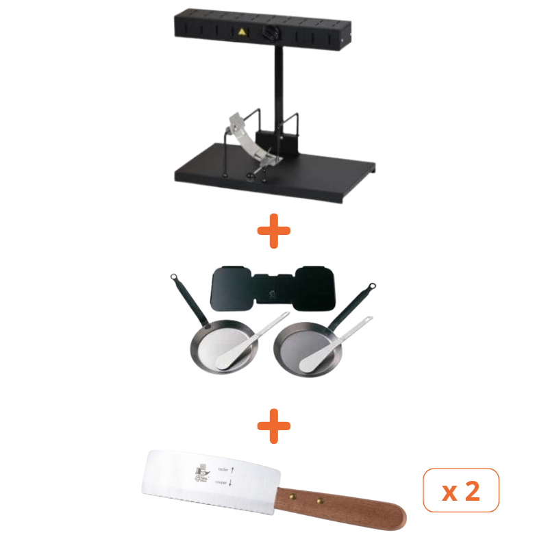 Designed with the professional in mind, this raclette and grill appliance is equipped with 8 individual enameled pans, each differentiated by distinct colors to avoid any confusion during service. This, added to the 8 beechwood spatulas, facilitates service and enhances the culinary experience without compromising efficiency.