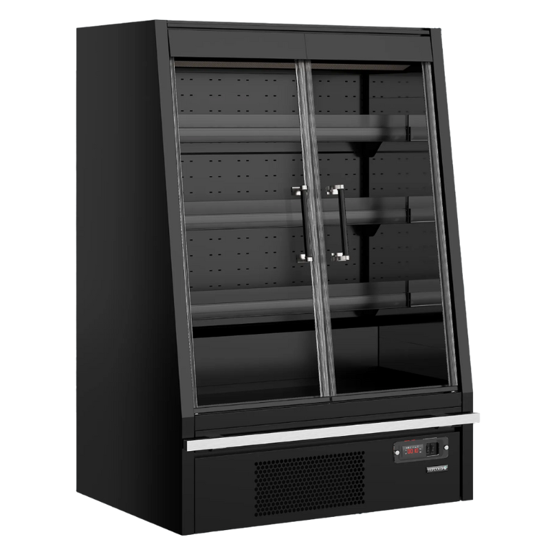 This positive/negative cold supermarket showcase offers an excellent view of the products. Its contemporary design, with its glass walls and sliding lids, will add a touch of modernity to your space. Thanks to its double bottom, this showcase will always appear well-stocked, thus attracting more customers.