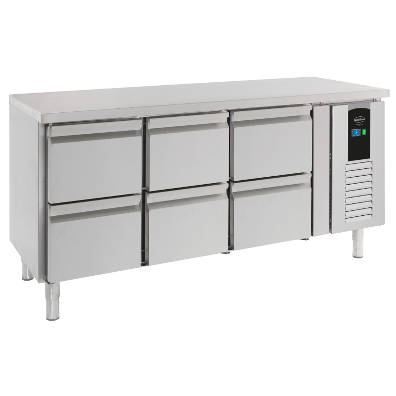 Táto Chladnička s pracovnou doskou Profi Line - 280 L s 4 zásuvkami má vnútornú a vonkajšiu časť vyrobenú z kvalitného nerezového ocele, s výnimkou ochrannej dosky vzadu, ktorá je vyrobená z pozinkovanej ocele.