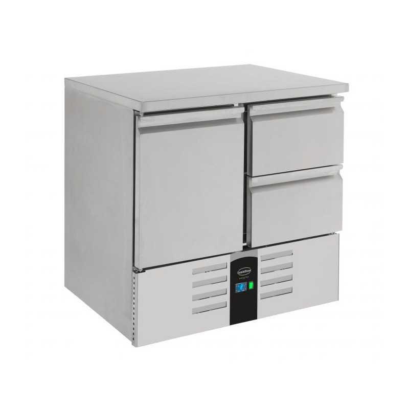 Stôl je tiež vybavený pokročilým ventilovaným chladiacim systémom, ktorý zabezpečuje rovnomerné rozloženie chladu s teplotami, ktoré sa môžu pohybovať od -2°C do 8°C, ideálne pre optimálne uchovanie čerstvých potravín. Prítomnosť chladiva R600a, šetrného k životnému prostrediu, posilňuje záväzok k udržateľnosti, sľubujúc vysokú úroveň výkonu aj v podmienkach okolia dosahujúcich 30°C.